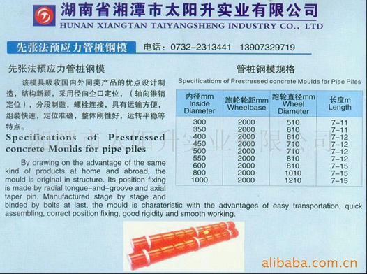 管樁鋼模規(guī)格表:
